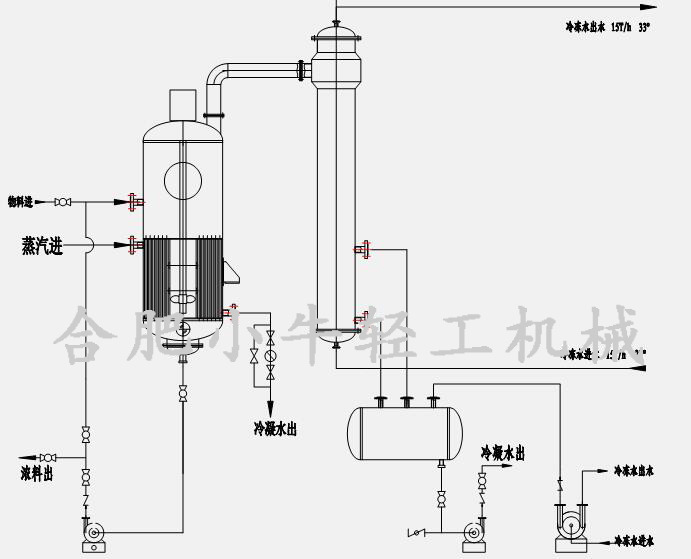 中央循環(huán)管式蒸發(fā)器屬于自然循環(huán)型的蒸發(fā)器,由于是傳熱而產(chǎn)生壓力差形成自然循環(huán)而將其水份蒸發(fā)從而達(dá)到濃縮的目的,所以結(jié)構(gòu)簡(jiǎn)單操作方便,液面容易控制。中央循環(huán)管式蒸發(fā)器是從水平加熱室及蛇管加熱室蒸發(fā)器發(fā)展而來(lái)。相對(duì)于這些老式蒸發(fā)器而言,它具有溶液循環(huán)好、傳熱速率快等優(yōu)點(diǎn),同時(shí)由于結(jié)構(gòu)緊湊、制造方便,應(yīng)用十分廣泛,有“標(biāo)準(zhǔn)蒸發(fā)器”之稱。但實(shí)際上由于結(jié)構(gòu)的限制,循環(huán)速度一般在0.4m/s-0.5m/s以下;由于溶液不斷循環(huán),使加熱管內(nèi)溶液始終接近完成液的濃度,故有溶液粘度大、沸點(diǎn)高等缺點(diǎn),此外,蒸發(fā)器的加熱室不易清洗。中央循環(huán)管式蒸發(fā)器適用于蒸發(fā)結(jié)垢不嚴(yán)重、有少量結(jié)晶析出和腐蝕性較小的溶液。
